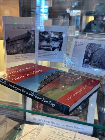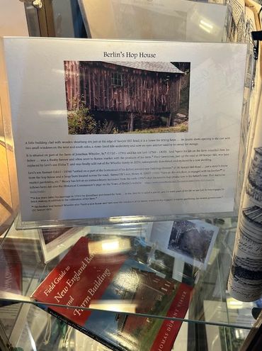 A little building clad with wooden sheathing sits just at the end of Sawyer Hill Road; it is a house for drying hops... its double doors opening to the east with two small windows on the west and south sides, a stone-lined kiln understory and now an open interior used by its owner for storage.